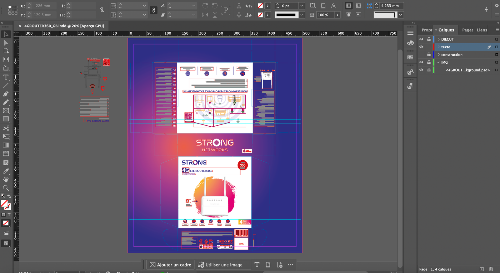 Le packaging est construit sur InDesign, avec des liens dynamiques pour optimiser la production :